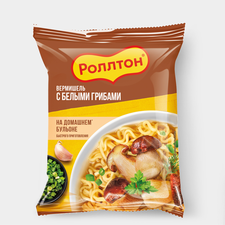 – Домашний вкус готовому блюду придает ароматный грибной бульон. -Одной пачки вермишели «Роллтон» с грибами достаточно для сытного перекуса на работе, в поездке или на даче.
