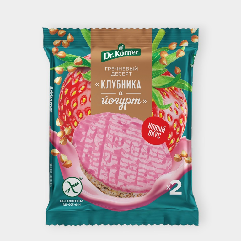 Злаковый десерт гречневый «Dr Korner» клубничный с йогуртом, 34 г